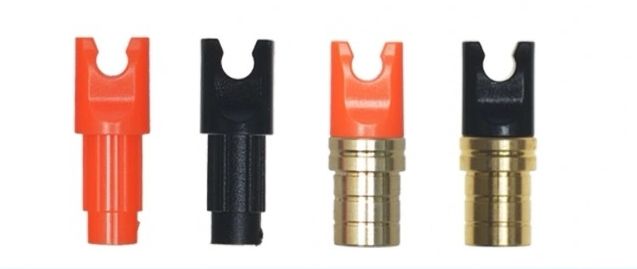 Nocks sind in einer Größe erhältlich, Farben: Rot, Weiß, Schwarz, Gelb, Grün, Orange, Blau, Lila